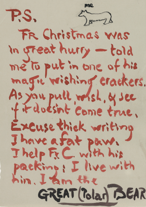 Em 1925, aparece um novo personagem: o Urso Polar do Norte. A princípio, sua letra é apenas um pouco mais grossa, mas, com o passar do tempo, ela vai ficando mais angulosa. A desculpa é que a sua pata é gorda, e ele encontra dificuldades de escrever com as canetas do Papai Noel.