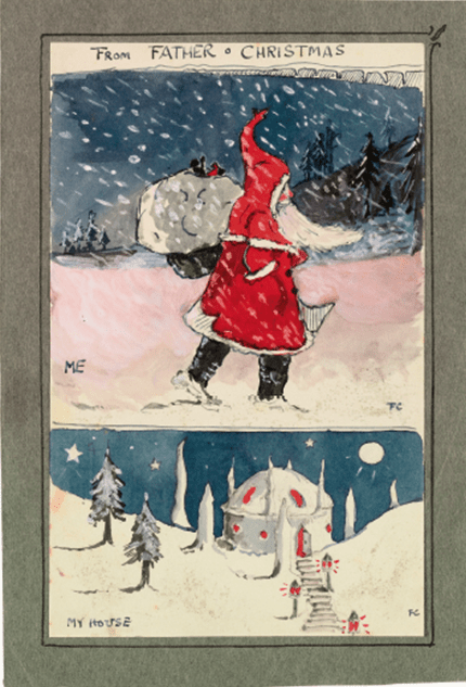 A correspondência vinha com um lindo desenho do próprio Tolkien, quer dizer, do Papai Noel — uma das mais belas ilustrações já feitas pelo autor —, uma espécie de autorretrato do bom velhinho e uma imagem de sua casa.