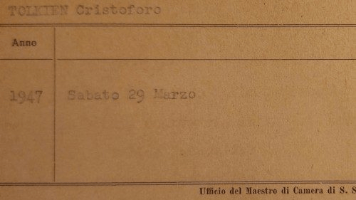 “Durante o meu trabalho de digitalização do registo da Audiência do Papa Pio XII, deparei-me com um pequeno cartão com a inscrição TOLKIEN, Cristoforo, Ano 1947, sábado 29 de março — diz Vittori — depois de um primeiro ceticismo, vi o volume das Folhas de Audiência do Pontífice do ano de 1947, sempre mantida na Casa Papal e, entre as Audiências Especiais daquela época, descobri que, para encontrar o Pontífice, estavam juntos o Sr. Peter Bentley e o Sr. Christopher Tolkien”. Para dissipar qualquer dúvida, Vittori examinou o documento original que se referia à carta encontrada, mantido no Fundo da Prefeitura da Casa Pontifícia e depositado nos Arquivos Apostólicos do Vaticano. “Entre os papéis, tinha uma carta datada 26 de março de 1947 — diz Vittori — em papel timbrado da Legazione Britanica da Santa Sé, com a qual Sir Francis D’Arcy Godolphin Osborne, dirigindo-se a monsenhor Federico Callori di Vignale, Cameriere Secreto participante em serviço no Escritório do Mestre da Câmara de Sua Santidade, solicitava um encontro com dois alunos da Universidade de Oxford, Sr. Peter Bentley e Sr. Christopher Tolkien, para o dia de sábado 29 de março de 1947″.
