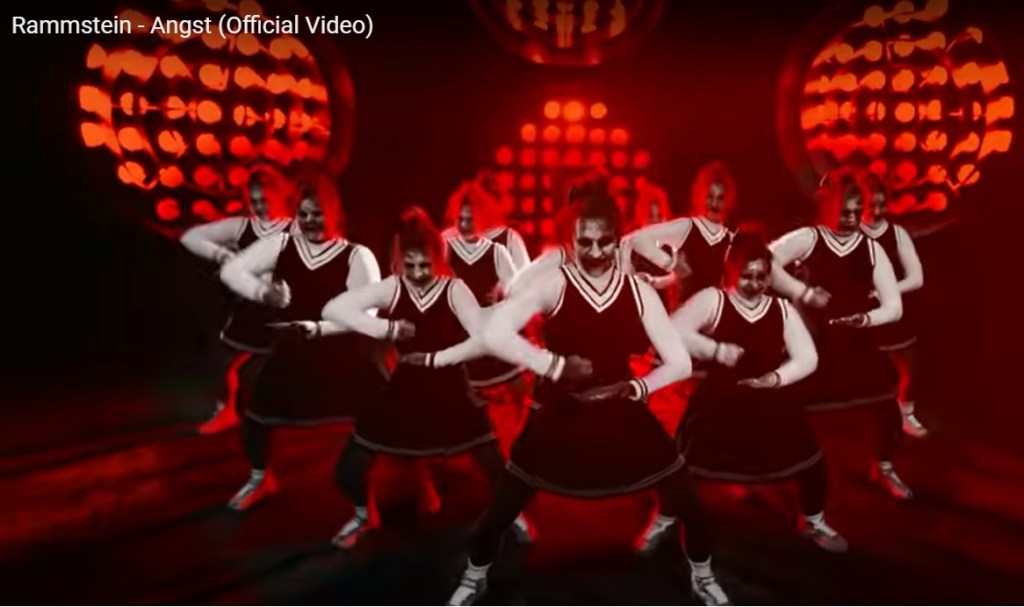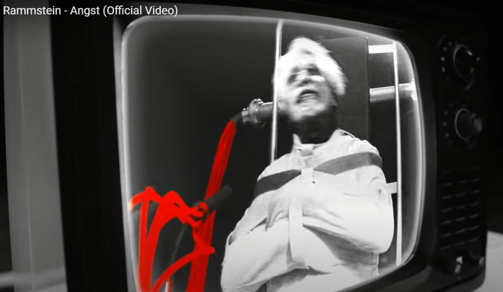 As imagens de Angst podem parecer um misto de diversas coisas sem sentido: cheerleaders dançando aos riffs das guitarras pesadas, o percussionista inicia o som com capacete que tem cabos ligados à uma fonte, o vocalista Till Lindemann aparece preso em uma camisa de força como um louco e, sendo transportado numa maca pelas líderes de torcida. Em um outro take, ele e os demais membros da banda estão vestindo roupas conservadoras como homens que vivem nos subúrbios americanos. Neste mesmo momento, monitores individuais estão estrategicamente posicionados atrás deles, e os mesmos estão ligadas aos mesmos cabos que ligam o percursionista e o “louco” Till, logo na sequência.